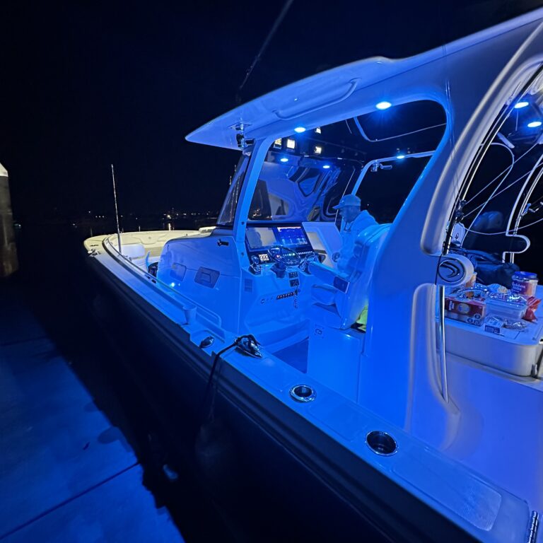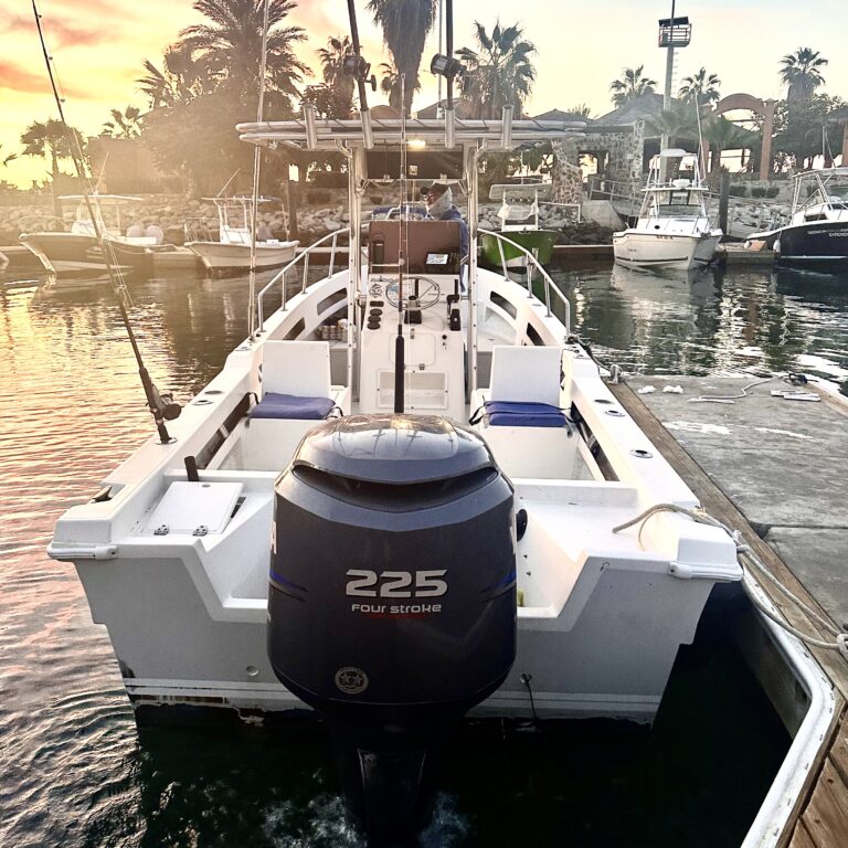 Features: Tuna tubes, live well, outriggers, GPS, fish finder, top-notch tackle.